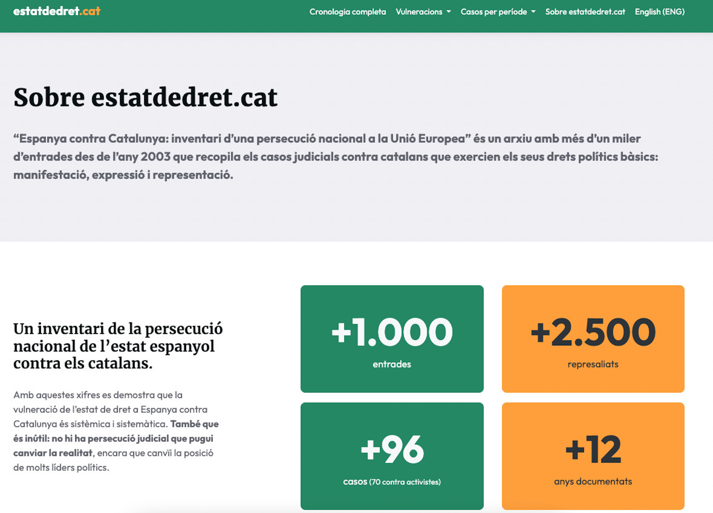 La pàgina web aplega 96 casos i més de 2.500 represaliats · Conté una cronologia completa de més de dotze anys
