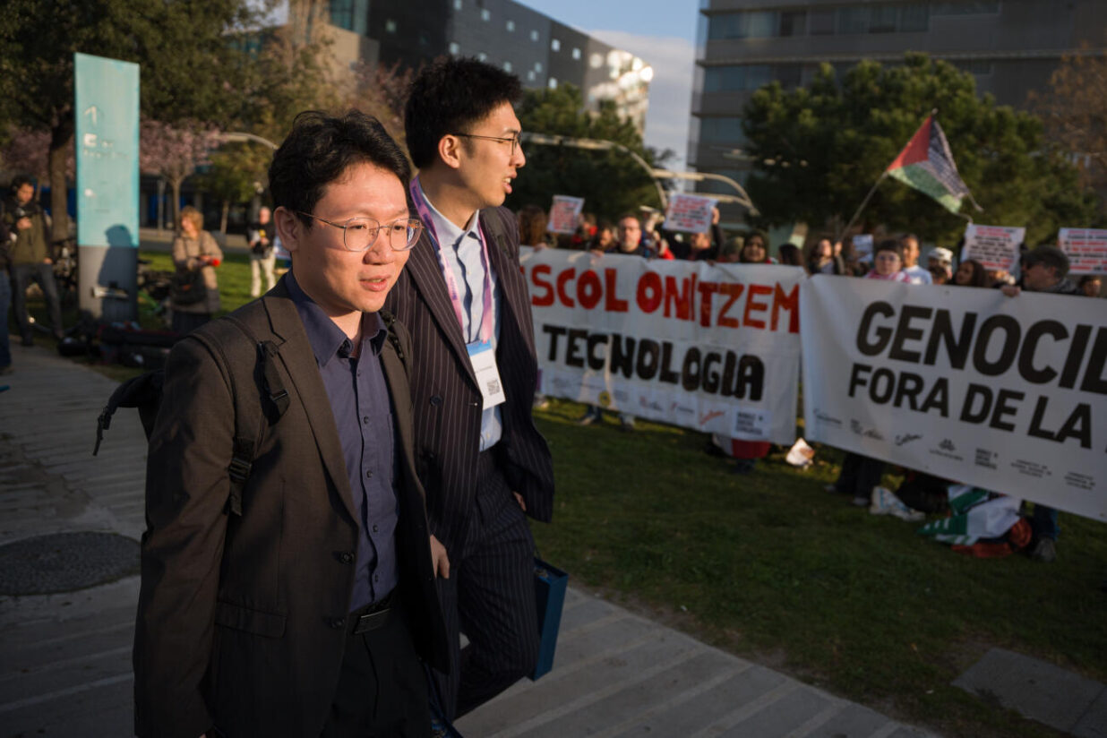 Una quarantena de persones s’ha concentrat a la porta del Mobile World Congress (MWC), al recinte de Fira de Barcelona, per denunciar vulneracions de drets humans i genocidis que vinculen amb el model tecnològic global. La protesta s’ha fet coincidint amb l’obertura del congrés i ha posat el focus en l’extracció de minerals en zones en conflicte.