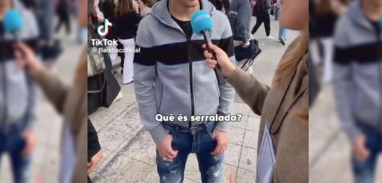 Pel que fa a aquesta última qüestió, i deixant de banda el tractat dels Pirineus, la comprensió oral dels nanos ja s’encalla al segon mot: “Quina què?”; “Qué significa eso?”; “Qué es eso?”; la periodista veu on és el problema i canvia la pregunta: “Saps què és una serralada?” “No”; “Andorra!”; “Montjuïc…”. A la qüestió sobre el president, el que se’ls encalla és el marc nacional: “Pedro Sánchez”; “Collboni”; “Pedro Sánchez”; l’entrevistadora els llança una pista: “Salvadooor…”; “Dalí”; “Dalí!”; “Buà, és que de política catalana no sé”; la preguntadora resol: “Illa” –en concret: “Iia”–, i una entrevistada: “No lo he escuchao nunca”. Val a dir que també hi ha una resposta correcta, amb la lateral palatal sonora i miraculosa. De la ubicació inversemblant de Lleida o el delta en un mapa, hom pot concloure que alguns han voltat poc pel rerepaís o que no saben què és un delta.