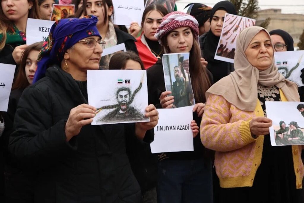 Fa dues nits hi va haver una explosió a al-Qamixli. Un home que anava amb motocicleta es va immolar en un centre de les forces de seguretat. El so va fer tremolar les cases. “El nostre enemic porta banderes d’Estat Islàmic a l’armilla. Els seus crims són iguals que els d’Estat Islàmic. Decapiten les nostres combatents. Els tallen les trenes. Parlen d’esclaves sexuals. Això ho feia Estat Islàmic”, diu una combatent.