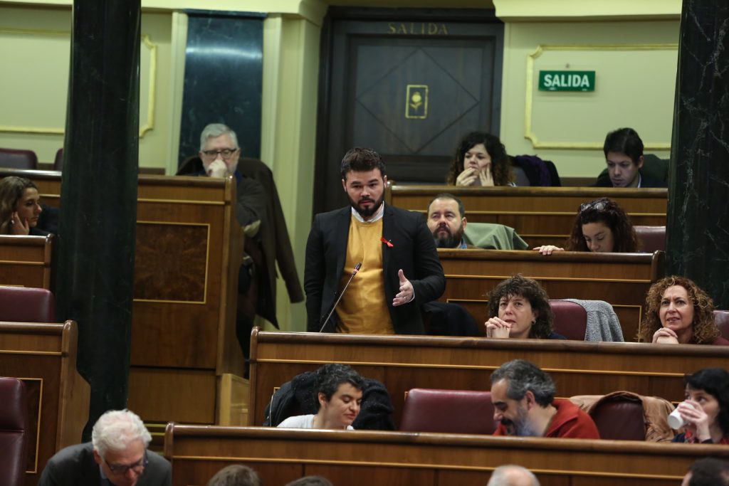 El portaveu d’ERC al Congrés, Gabriel Rufián, ha criticat la decisió del Tribunal Constitucional (TC) de paralitzar les resolucions aprovades pel Parlament per fer un referèndum independentista el 2017, i ha acusat l’alt tribunal de ser el “braç armat” de l’Estat per “perseguir i amenaçar” el poble català.