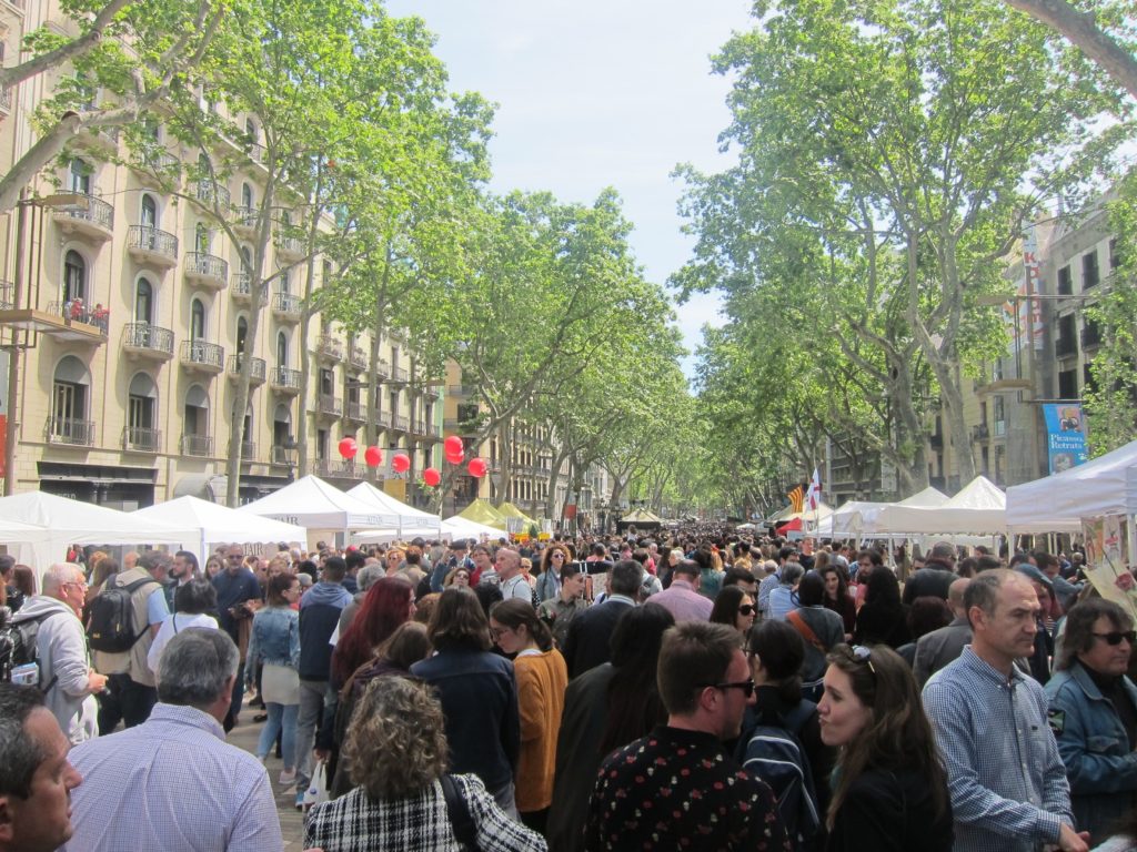 Dies com el de Sant Jordi permeten veure escenes com a famílies senceres passejant –una portant als seus dos fills disfressats com el drac i Sant Jordi–, parelles amb el seu llibre i rosa, caçadors de llibres a la recerca del seu preuat tresor i turistes que es veuen sorpresos per l’allau de gent.