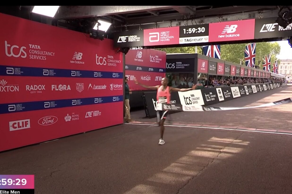 El 2019, l’atleta kenià Eliud Kipchoge també va córrer una marató en menys de dues hores –una hora, cinquanta-nou minuts i quaranta segons–, però va ser en una prova dissenyada específicament per a batre el cronòmetre.