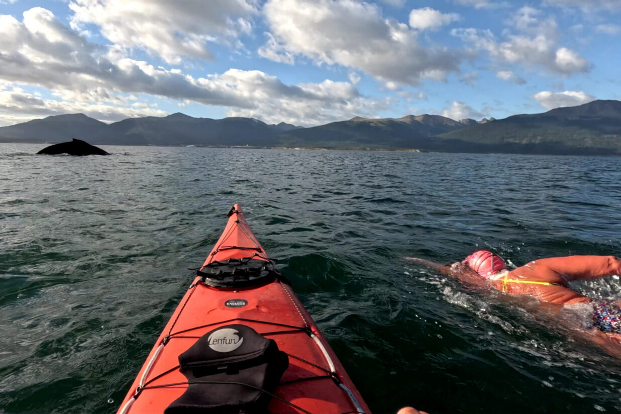 Diumenge hi havia molt poca gent que la seguia. A més de l’organització, en Siscu, el seu marit i suport, que no la perd de vista ni un moment, i sempre va amb la barca al seu costat. Fa els vídeos i les fotografies que penja al canal d’Instagram i després reparteix a la premsa local. De fet, la imatge que encapçala aquest article és seva. Aquesta vegada, na Sofia, la seva fisioterapeuta i amiga, l’ha volguda acompanyar. És la persona que més la coneix, qui sap com es troba dins l’aigua quan la veu nedar, i això li dóna seguretat… En Siscu també va captar la imatge d’una balena majestuosa que nedava paral·lelament a ells. Hi havia pingüins i llops marins. Na Tita no els veia, concentrada només a fer una braçada darrere una altra per arribar al port. Va tardar una mica més del que esperava, i va nedar més metres, perquè a darrera hora va haver-hi un canvi en els corrents. I quan és a punt d’arribar, els nervis. No s’ho explica. Tants anys que fa que neda distàncies llargues a la mar oberta, i quan és a tocar de la riba comença a tremolar.