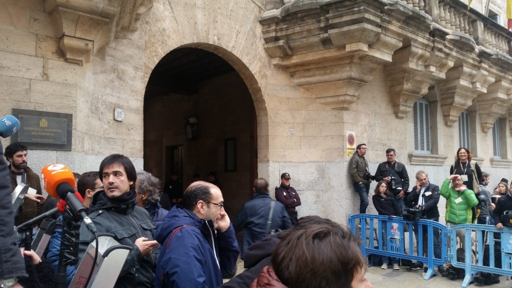 Un centenar de periodistes esperen l’arribada d’Iñaki Urdangarin i Diego Torres, els quals han de comparèixer a l’Audiència Provincial de Palma per la vista de mesures cautelars que ha sol·licitat el Ministeri Fiscal.