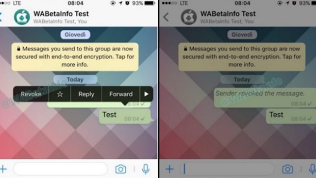 Fins ara no era possible eliminar els missatges enviats a través de Whatsapp, però la companyia treballa en aquesta línia, i ja està provant una opció de revocar l’enviament de missatges, que s’ha pogut veure a la versió beta d’iOS.