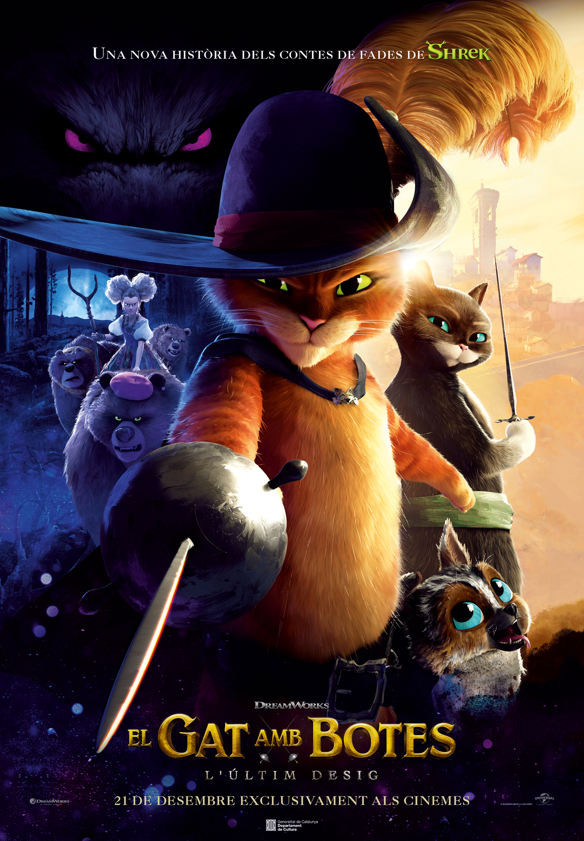 I si tens ganes de passar una bona estona de diversió, no et perdis l’estrena El Gat amb botes i les seves aventures per trobar el mític “últim desig”. L’enginy, el sentit de l’humor, cert desvergonyiment i la creativitat del gat amb botes faran les delícies de tota la família i, a més, en català en moltes sales de Catalunya.