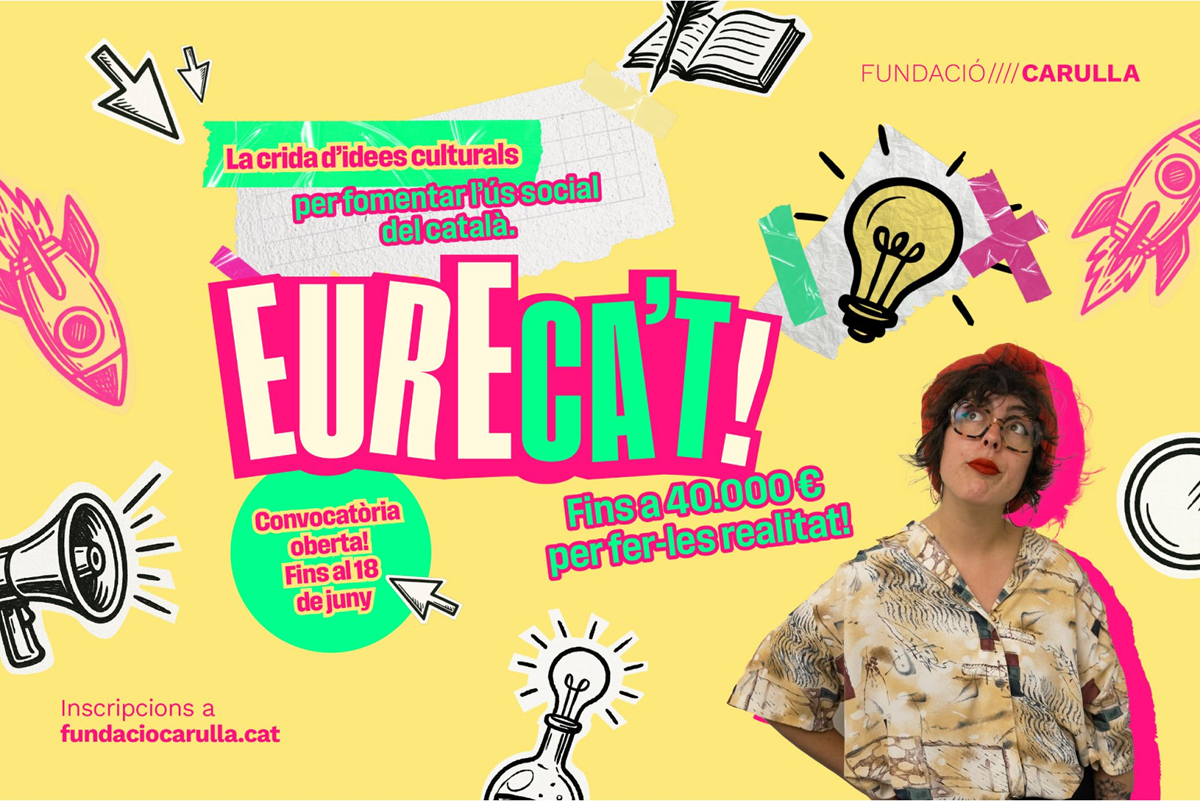 Tota persona o entitat que tingui una idea cultural i innovadora per enfortir el català té, ara, l’oportunitat de fer-la realitat. La Fundació Carulla referma el seu compromís amb la llengua com a eina de transformació social amb el programa EureCA’T!, que aposta per la creativitat i l’acció cultural com a motor per recuperar i ampliar l’ús del català en la vida quotidiana. La crida s’adreça a totes aquelles iniciatives que explorin noves maneres de fer, que connectin amb les persones i que es puguin materialitzar en accions d’impacte real i sostingut. Poden tenir format presencial o digital i adoptar qualsevol llenguatge o suport artístic i cultural. Llibertat màxima per deixar volar la imaginació i cercar solucions creatives que facin del català una llengua viva i compartida.