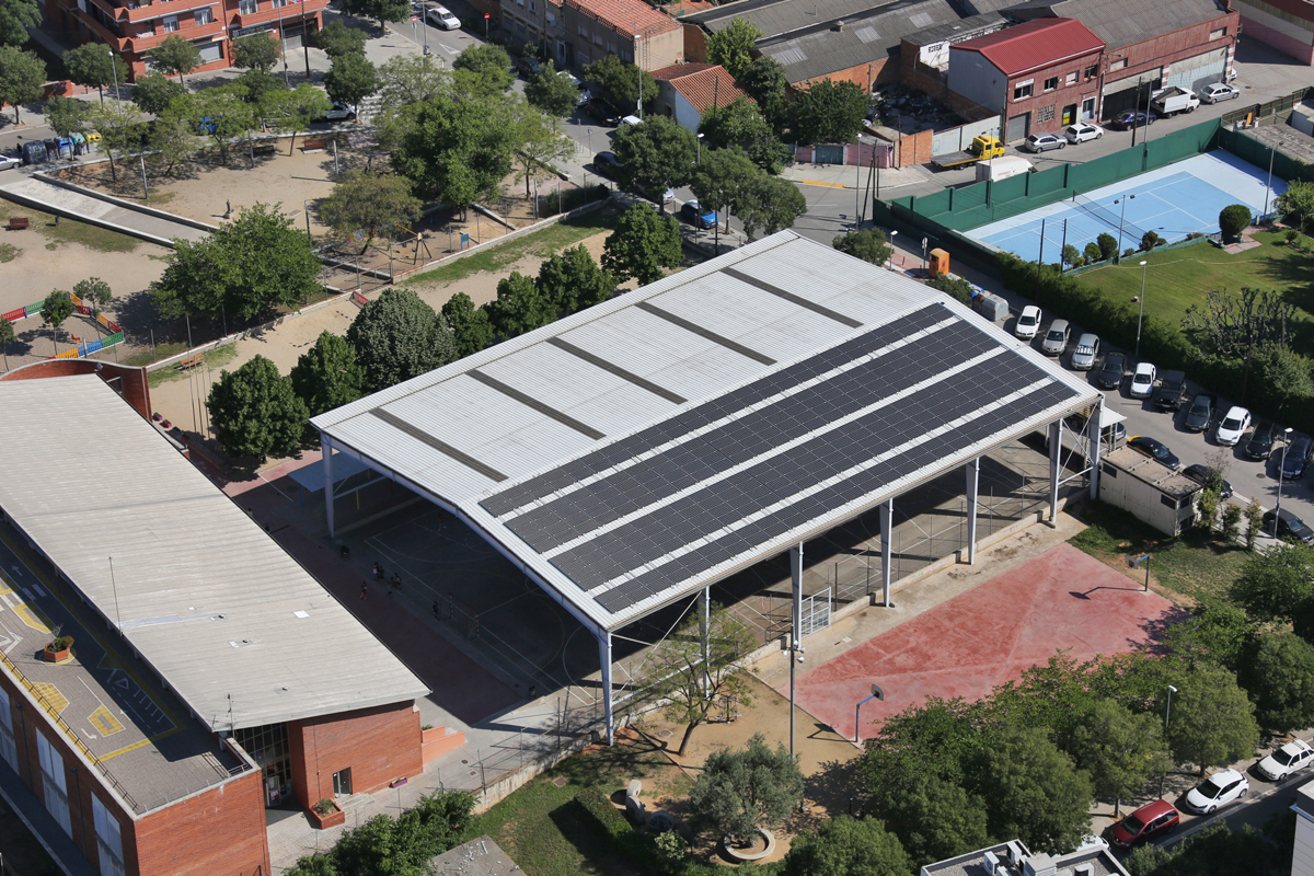 Així, ajuntaments, centres esportius, biblioteques i, especialment escoles, pel seu potencial pedagògic, funcionen com a punts de generació d’energia verda de proximitat, de manera que la ciutadania se’n pot beneficiar de manera molt directa. Gil Lladó, responsable de l’Oficina d’Eficiència Energètica de l’AMB, subratlla que ‘fer aquestes instal·lacions solars a prop dels punts de consum limita les externalitats negatives que poden tenir les renovables lluny d’aquestes grans àrees urbanes on hi ha tant consum’. I precisament el fet que al territori metropolità hi hagi un consum d’energia molt elevat i poc espai per generar fotovoltaica al sòl és el que ha portat a l’AMB a aprofitar les cobertes dels edificis per instal·lar-hi plaques. Malgrat això, tal com matisa Ana Romero, cap d’Emergència Climàtica i Educació Ambiental de l’AMB, es treballa en altres opcions perquè ‘l’espai de cobertes és limitat i no totes estan ben orientades o tenen prou capacitat’.