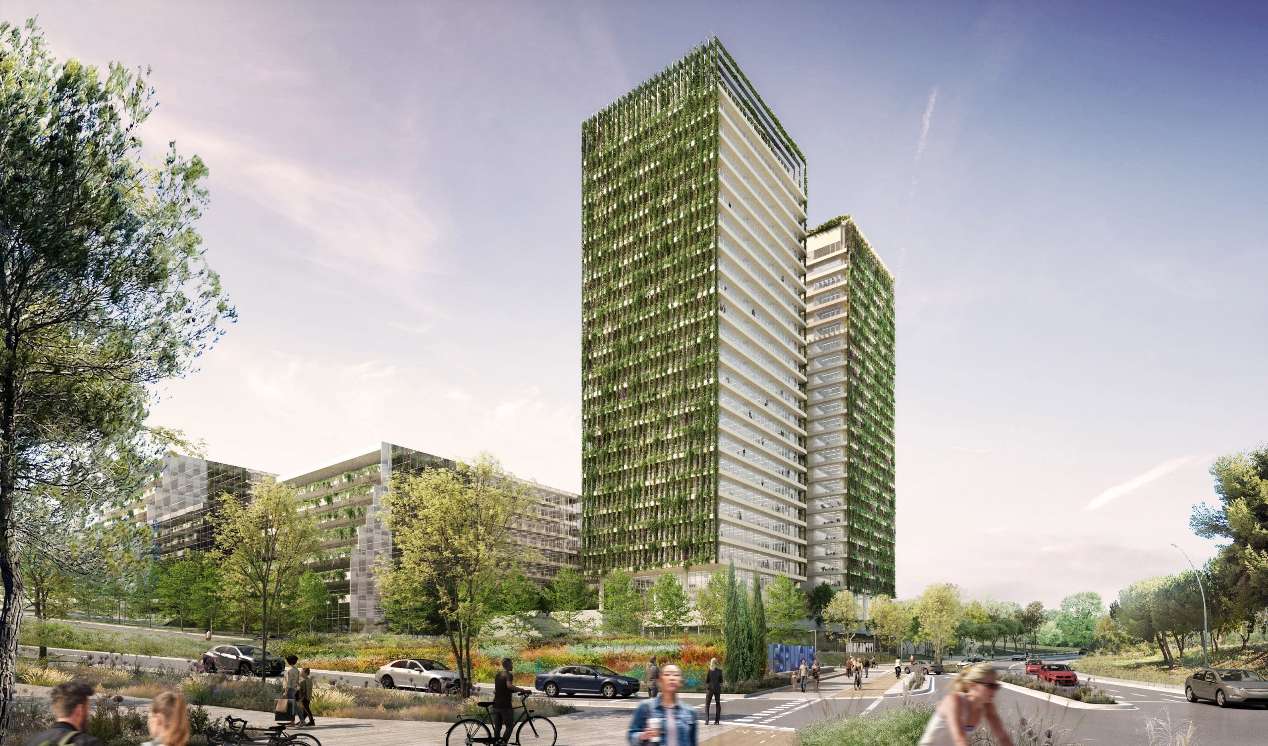 Tot i que que cada torre l’està dissenyant un equip diferent (GCA Architects la d’oficines i Batlleiroig la de l’hotel), la col·laboració entre tots dos és molt estreta, sobretot, per al disseny de l’aspecte exterior. Segons explica GCA Architecs en la seva pàgina web, “s’ha adoptat una perspectiva biofílica, buscant la reconnexió amb l’entorn i els sistemes naturals amb l’objectiu que els espais creats siguin sostenibles, saludables i productius per als usuaris, diferenciant-se així de la resta de parcs empresarials i de serveis”.