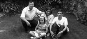 La família Atzet ha escollit el jardí per fer aquesta foto, on, igual que a Tiana, s'hi respira tranquil·litat.