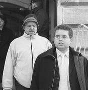 José Castro, en primer terme, i Sebastià Comas Iñaki, tot darrere, sortint de l'Audiència.
