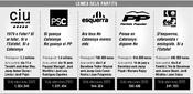Els lemes dels partits deixen clar que es prenen la consulta com unes primàries. El 1979 o futur? de CiU indica la voluntat de la federació de ser qui tingui la responsabilitat des del govern de desenvolupar el text i deixa el no dERC el partir rival en leix nacionalista com a part del passat. El PSC planteja una batalla contra el PP en un duel Zapatero-Mariano Rajoy que motivi el seu electorat. Ahir Rajoy va ajudar a donar la raó al lema socialista amb lanunci de portar el text al Tribunal Constitucional si saprova. Com també fa el PP, el PSC també vol donar-se una pàtina de catalanisme, una de les seves rèmores tradicionals en les eleccions catalanes, amb un sí a Catalunya i començant la campanya a Manresa, el cor del país. I de passada, posa ERC contra les cordes assimilant-la amb el PP. Mentrestant, ICV vol treure el cap atorgant-se la paternitat del títol de drets, el més ecologista i desquerres del text. I ERC argumenta el perquè del seu no en les retallades va iniciar la campanya a Miravet, símbol de lEstatut del 30 de setembre que considera injustificades després de 27 anys de democràcia. La banya la posa contra CiU, en un missatge per generar dubtes als votants més sobiranistes de la federació.