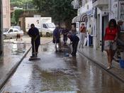 Als pobles sorpresos dimecres per la pluja, ahir es treballava per intentar treure l'aigua i el fang acumulat. En punts com ara Castelló i Llançà, hi va haver baixos en què l'aigua va superar el metre d'altura i hi havia molta gent que preparaven barreres per evitar que els entrés aigua si tornava a ploure fort aquesta nit, com estava previst. A Llançà, diverses platges van quedar destrossades. A Castelló van caure 2.06 l/m² en l'hora de més intensitat. És un dels punts on ha plogut més de Catalunya. A Portbou es preveia que durant la nit l'aigua passés per sobre la presa de Portbou.