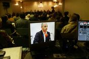 A la Farinera plena de gom a gom, com en les millors ocasions, fins i tot amb més gent que no pas el dia que hi va passar Joan Laporta cada candidatura porta la seva claca, disposada a aplaudir les frases més contundents del seu home i en alguna ocasió reprendre el rival. Els del PP estan en franca minoria. Potser perquè Millo noti més l'escalf, s'han situat a les primeres files. A la taula, domina l'uniforme de campanya: vestit de tons foscos, camisa blanca o monocolor i corbata, excepte, és clar, en el cas de Boada, que no llueix corbata i que porta una camisa de ratlles de colors. Des d'un extrem, el periodista Lluís Falgàs exerceix de moderador simpàtic amb duresa al principi i força benevolència al final. Casadesús comença tens aquest cronista no el veurà somriure ni un moment i acabarà igual. Nadal, al seu costat, manté aquell posat de murri i escruta l'auditori com el professor que examina una classe. Vigo està seriós, però relaxat. Millo, el més somrient, es belluga molt. Boada s'ho mira des de la llunyania perquè sap que, en aquest escenari, encarna l'alternativa. Uns minuts de tempteig i tot seguit, primer cos a cos entre els dos grans: intercanvi de xifres i estadístiques entre el socialista i el convergent. No és recomanable encarar-se amb el conseller d'Obres Públiques, et pot deixar anar un reguitzell d'inversions que, bones o dolentes, aparenten molt. Més endavant semblarà que tirin per terra la llegendària i educada manera gironina de fer política en parlar del famós DVD.