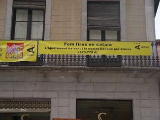 L'ADAC ha penjat al seu local una pancarta en què acusa l'Ajuntament d'haver-se «venut» el català a les Fires per diners i exposa el pressupost de l'edició d'aquest any. L'entitat és molt crítica perquè afirma que no es compleix la llei de normalització lingüística, un aspecte que també critica la Unitat Nacional Catalana.
