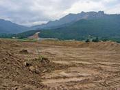 Mentre que a la banda d'Osona els treballs van fer-se visibles un any i mig enrere, a la Garrotxa l'impacte sobre el territori es va començar a notar a finals de l'any passat (amb les obres a la boca del túnel, al cim de Joanetes) i d'uns dies ençà s'ha fet palès també a la plana. El solc obert a tocar Can Trona correspon al tram de 4,1 km que va des de la boca del túnel fins al flamant giratori del polígon de la Serra, on comença la variant de Sant Esteve d'en Bas, inaugurada per Setmana Santa. Inclou un túnel a l'altura del nucli de Joanetes (la Codina, de 1.450 metres) així com una sèrie de falsos túnels i viaductes, entre els que destaquen el pont de Mas Rubió, que farà prop de 600 metres, i un altre d'uns 90 metres que salvarà el Fluvià just abans d'arribar al giratori de la Serra. En la major part d'aquest tram, la carretera tindrà un tercer carril per als vehicles lents, ja que hi haurà pendents de fins al 6,5 per cent. Aquest segment de l'eix Vic-Olot té un pressupost de 63,5 milions d'euros (els paga la Generalitat) i l'executa una unió temporal d'empreses formada per Scrinser SA, Sacyr SA & Cavosa Obras y Proyectors i CRC Obras y Servicios SA.