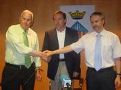 Els tres caps de llista dels tres partits que formaran el nou govern de Calafell, Jordi Sánchez, Josep Parera i Carles Rión, van presentar públicament l'acord al qual van arribar els tres partits. Josep Parera de l'Agrupació Democràtica Municipal de Catalunya (ADMC) va dir ahir: «Tenim molt clar que Calafell necessita un govern estable i eficaç, estic convençut que amb aquest govern podrem treballar més de dos mandats.» Per la seva banda, el republicà Carles Rión hi va afegir que es donen totes les condicions bàsiques que fan possible l'entrada d'ERC al govern. El nou regidor va assegurar que ofereix «garantia d'estabilitat» i considera que «hi ha un espai clar i definit per a ERC en el si del govern». El partit tindrà un àmbit propi d'actuació a través de la regidoria de Comerç, Indústria i Port. Finalment, el cap de llista del PSC, Jordi Sánchez, qui amb tota seguretat dissabte recuperarà l'alcaldia perduda al maig del 2003, va dir: «Amb la incorporació d'en Carles Rión, assolim un govern encara més fort, més estable, més nombrós 13 regidors, amb gent molt preparada per poder governar el municipi.» Referint-se als grups de CiU i el PP, que es quedaran a l'oposició, l'alcaldable socialista va dir: «Restem oberts a dialogar amb la resta de forces per veure quines aportacions poden fer des d'una oposició lleial i constructiva.»