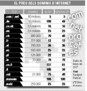 En menys de dos anys s'han comptabilitzat 25.000 registresGERARD ARIÑO. Barcelona Els usuaris que vulguin registrar un domini «.cat» han de pagar prop de 75 euros, dotze vegades més que dominis genèrics com ara el «.com» i el «.net», i el triple del domini territorial de l'Estat espanyol, el «.es». . La Fundació Puntcat, l'ens que gestiona el domini, comença a buscar fórmules per abaratir el preu i fer que el nombre de registres augmenti.