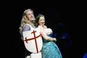 L'obra compta amb la participació, a més de 13 músics, de 20 actors i ballarins que interpreten 80 personatges. Els personatges centrals són el rei Artús, interpretat per Jordi Bosch, que ahir reconeixia l'esforç que ha fet el coreògraf de l'obra Francesc Abós, «perquè hagi pogut fer uns passos de ball»; Fernando Gil, en el paper de Sir Lancelot i Marta Ribera (que la temporada passada va protagonitzar Cabaret) amb el paper de la Dama del Llac. Ribera va destacar la reacció del públic en les sessions prèvies que s'han fet aquests dies per polir l'espectacle abans de l'estrena: «Tot i les petites pegues que poden sortir a les sessions prèvies, el públic reacciona com si es tractés d'un espectacle ben rodat», va dir. Cal afegir-hi la participació de Pepe Rubianes com a la veu de Déu.