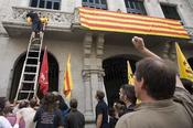 A Girona, un grup de joves de l'esquerra independentista es va enfilar ahir amb una escala al balcó de l'ajuntament per penjar-hi l'estelada. Poc després, la policia local la va retirar. Els joves ho van fer per demostrar la seva disconformitat amb el consistori, que va aprovar penjar la bandera independentista en el balcó de l'ajuntament, però que després va decidir hissar l'estelada a la plaça Catalunya. Altres poblacions de la demarcació de Girona, com Lloret, Premià de Mar, Puigcerdà, Ripoll i Santa Coloma de Farners, van penjar la bandera independentista als ajuntaments. A la resta de Catalunya, capitals de comarca com Berga (Barcelona), les Borges Blanques (Lleida) o Montblanc (Tarragona) també van hissar l'estelada als balcons del consistori. A Vic, tot i que el govern local no va aprovar la proposta, la ciutat es va llevar ahir amb tres banderes independentistes a la façana de l'ajuntament. En total, unes cent poblacions de Catalunya, que representen prop de 850.000 catalans, han penjat l'estelada als balcons dels ajuntaments.