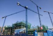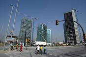 No es pot dir que a la plaça Europa l'activitat sigui febril, però el paisatge d'aquesta zona guanyada a la Granvia continua dominat per les grues. Les 28 torres s'havien d'aixecar progressivament, i segons el Consorci per a la Reforma de la Granvia, només un edifici està aturat per la crisi. Es tracta d'un bloc que promou la immobiliària Colonial, on ja s'havien excavat els fonaments. L'empresa, afectada per un important sotrac financer, ha aturat les obres i s'està repensant si destinarà l'edifici a oficines o a habitatges. Martinsa Fadesa, que va suspendre les obres de cinc torres (a la imatge) durant quatre mesos, les ha reprès perquè ha trobat comprador per als blocs d'oficines i habitatges. Falten, a més, vuit edificis per començar.