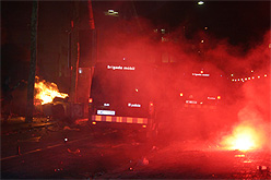 A més de les llaunes de cervesa que es venien pel carrer, fins i tot hi ha hagut qui ha improvisat una barra de bar al mig de la Rambla amb una fusta, dos cavallets, i tota mena d'alcohol i refrescs per barrejar-ho. La gent enfilada al mobiliari urbà ha causat algunes destrosses; un dels semàfors del pas zebra entre la plaça de Catalunya i la Rambla ha quedat decapitat i fins i tot ha caigut un dels fanals de la font de Canaletes. El dispositiu dels Mossos constava de desenes de furgonetes aparcades a la part dreta de la Rambla, però no han pogut evitar algunes destrosses en comerços de la zona, tot i que sembla que han estat de poca importància. Un grup de persones ha forçat l'entrada al Burguer King del capdamunt de la Rambla, i cap a les dues de la matinada també s'ha trencat l'aparador de la botiga de roba Springfield. Els Mossos han respost amb càrregues policials i també han disparat pilotes de goma contra la multitud. Molts s'han queixat de que s'atacava a tothom, tingués a veure o no amb les destrosses.