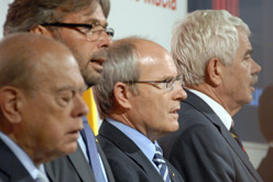 En una línia semblant s'ha expressat el president del Parlament, Ernest Benach, en el seu discurs. Benach ha lamentat que l'autogovern de Catalunya es trobi 'limitat i freqüentment assetjat' per l'estat i ha reclamat 'unitat i decisió' en defensa de l'estatut. 'Si es toca l'estatut l'hem de defensar com sigui, perquè si permetem tocar un sol fil de roba de la llibertat de Catalunya, de mica en mica l'anirem perdent tota', ha reblat.