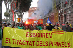 La manifestació va començar a les quatre de la tarda a la plaça Catalunya i va transcórrer enmig d'un ambient festiu i amenitzat pels tambors i les actuacions de castellers i bastoners. Entre els missatges inclosos a les pancartes hi havia la que encapçalava la manifestació, 'Esborrem el tractat dels Pirineus', signat per les monarquies francesa i espanyola el 7 de novembre de 1659 i que va significar la fractura territorial de la nació i el començament de l'assimilació francesa de Catalunya Nord. La clausura del dotzè Correllengua ha protestat contra aquest tractat (del qual l'any que ve es commemoraran tres-cents cinquanta anys) i ha reivindicat el paper dels nord-catalans en la defensa de la llengua.