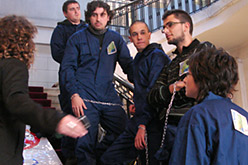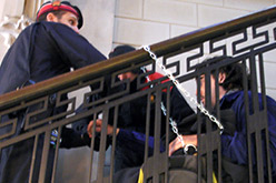 Cinc joves s'encadenen al Departament d'Economia contra la construcció de dues centrals eòliques