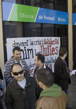 La Coordinadora es va presentar el passat dimecres en una acció agitativa que van realitzar davant de l’Oficina de Treball de la Generalitat (OTG) que va consistir en repartir octavetes convocant a la manifestació unitària en defensa dels drets dels treballadors que es celebrarà el poper dissabte 28 d’abril a dos quarts de sis a Barcelona (Pl. Universitat).