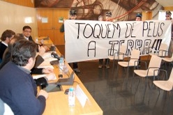 Durant la presentació de l'estudi quatre membres del Grup de Defensa del Ter han desplegat una pancarta contrària al projecte.